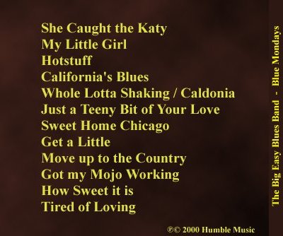 Featuring several favourites from the weekly jam's, the CD goes a long way to capturing the feel of those wild Monday nights at the Big Easy.